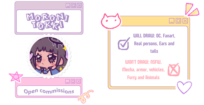 Portfolio: Completed works will be featured in my portfolio and social media with watermarks and proper credit (✿◡‿◡).